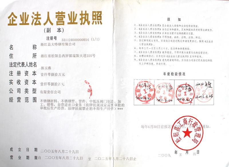 | 經營範圍 | 不鏽鋼材料、不鏽鋼管、管件、中低壓閥門制造、加工、銷售,自營進出口業務(法律法規規定需要審批的審批後生産經營,法律法規禁止的不得生産經營) |